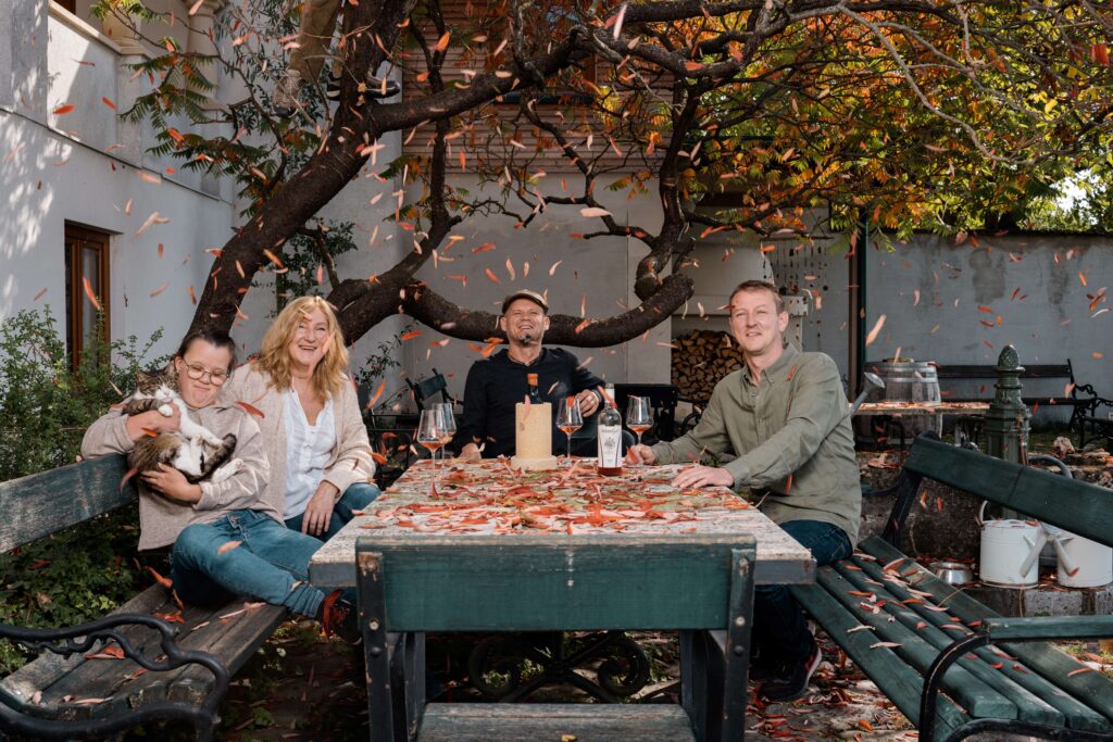 Der Hof der Familie Schmelzer ist eine biodynamische Kreislaufwirtschaft mit Obst, Gemüse, Kräuter, Bienen, Hühner, Schafen und vor allem Weintrauben.